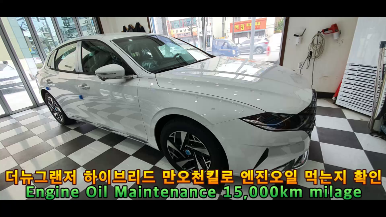 더뉴그랜저 하이브리드 약 15000km 주행 후 엔진오일 체크 결과, 오일은 약간만 먹어서 정상이네요. 점검 후 오일 교환했습니다.