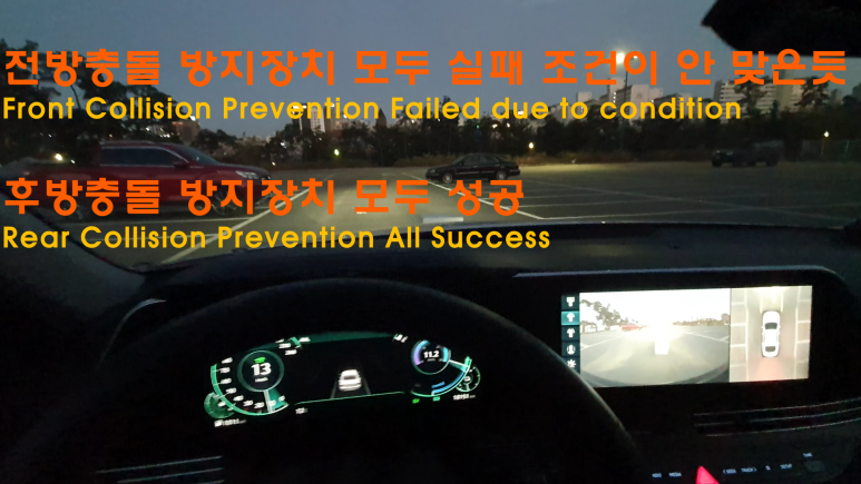 더뉴그랜저 하이브리드로 후방충돌 방지장치 작동 실험을 해봤습니다. 전방충돌 방지장치 실험도 해봤으나 조건이 맞지않아 실패이고요. 후방충돌 방지장치는 자동으로 브레이크가 잘 잡힙니다.