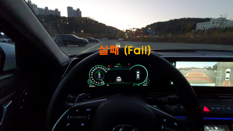후방충돌 방지장치를 시험해봅니다. 주차할때 간혹 들어온 적이 있습니다.