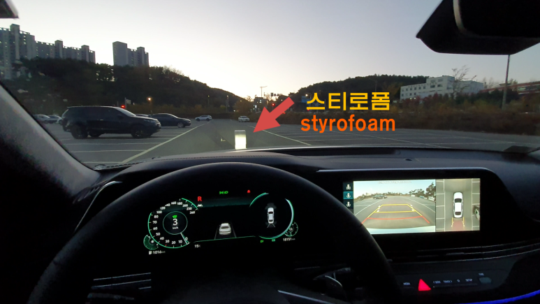 전방 충돌 방지장치부터 천천히 다가가면서 실험해봅니다.
