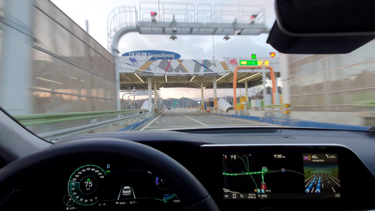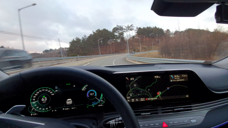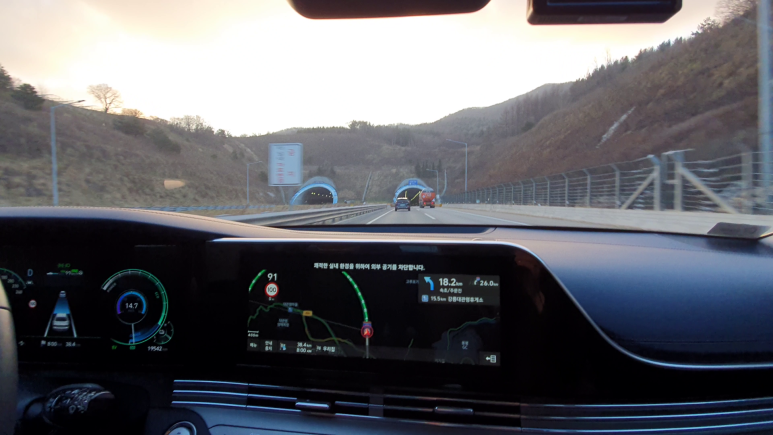 대관령에서 동해안으로 가는 고속도로에서 아침에 산을 끼고 일출을 구경하며 달려봅니다. The sun rise could be enjoyed on the highway passing through the mountain to the east side beach by driving the new grandeur hybrid
