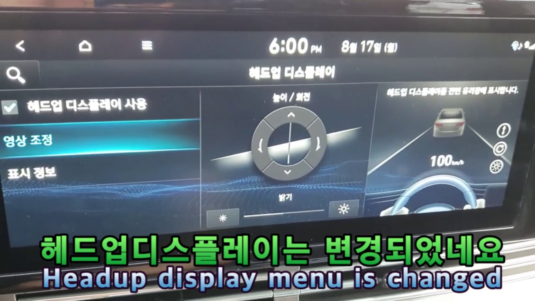 헤드업 디스플레이 제어화면이 바뀌었네요