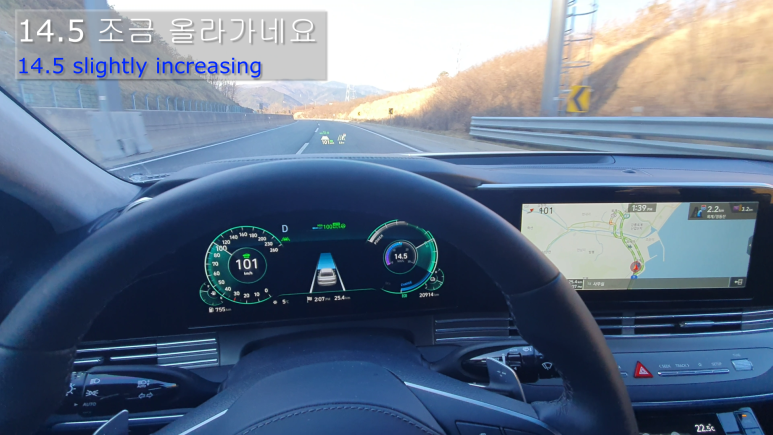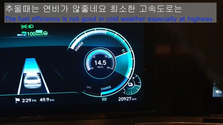 더뉴그랜저 하이브리드 차량의 겨울철 연비를 측정합니다. 원격시동으로 공회전을 하고 고속도로를 주행하면서 연비가 향상되는지를 점검하였습니다. The new grandeur hybrid's fuel efficiency was measured during highway driving after remote controlled engine start in cold winter.