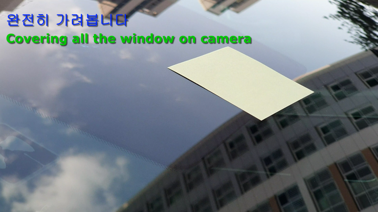그래서 포스트잇 작은 것으로 가리고 테스트 해보려고 합니다. 한 3분의 1 정도는 가려지는 것 같습니다. 정밀도가 요구되는 카메라라서 자율주행이 불가할 것으로 예상합니다.