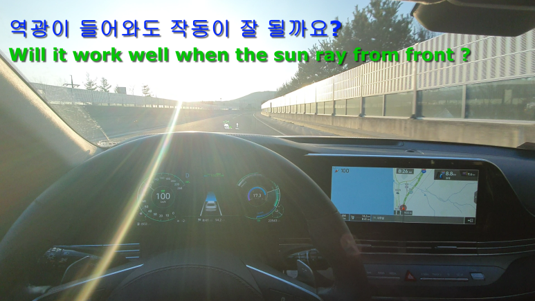 전방카메라가 햇빛이 앞에서 쏟어지는 역광이 들어올때 차선을 달 인식할지 궁금해졌습니다. 그래서 역광을 보면서 고속도로를 주행해봅니다.