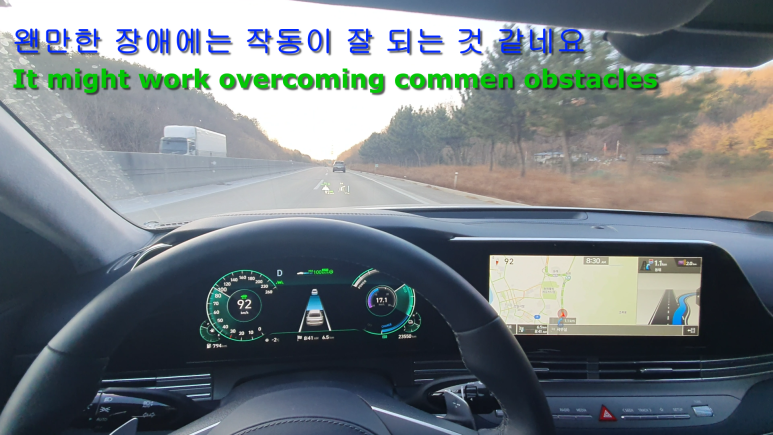 주행을 시작합니다., 주행하면서 어떤 기능들이 작동 안되는지 보겠습니다.