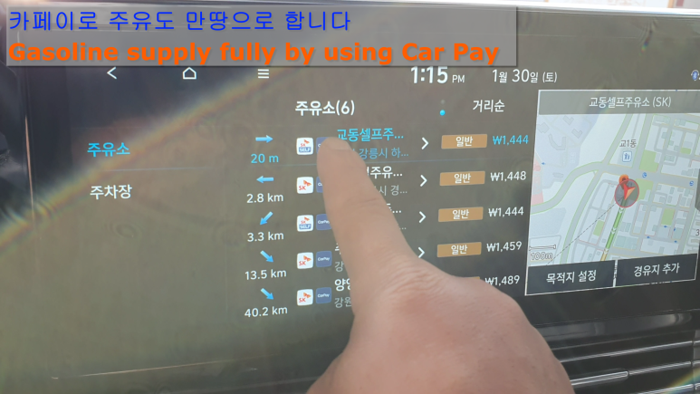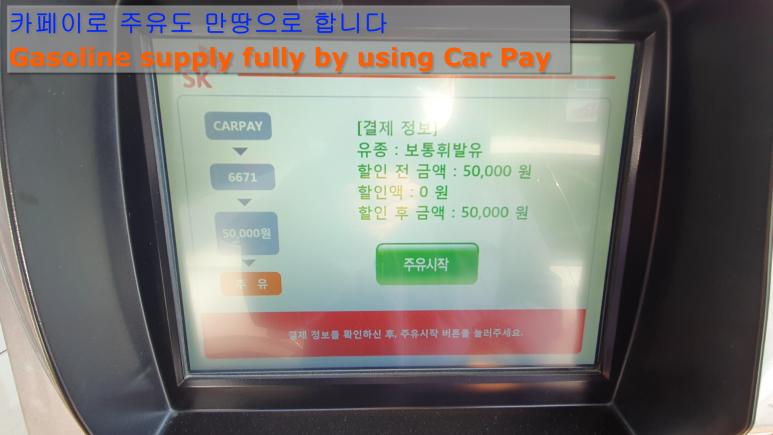 카페이로 주유할 곳을 찾아서 주유하고 결재를 합니다.