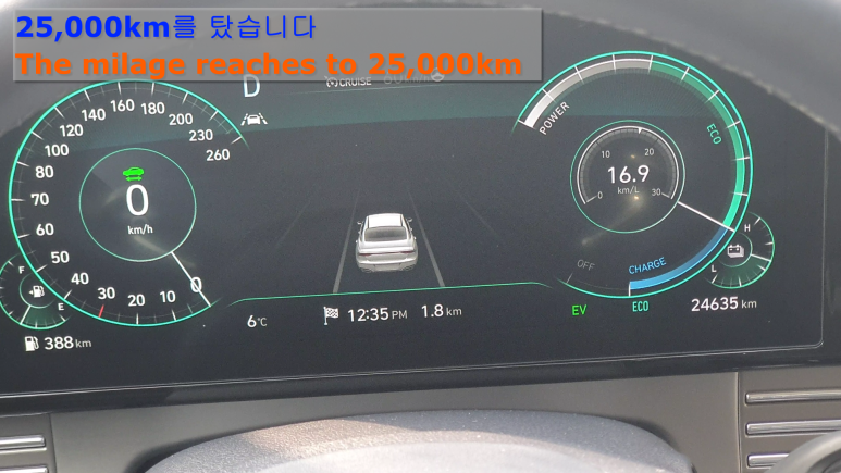 더뉴그랜저 하이브리드를 9개월만에 2만5천km 운행했습니다. 엔진오일은 6천과 1만5천에 교환했고 이제 3번째 교환입니다. 엔진오일 교환과 타이어 위치변경, 공기쳥정 필터교환을 하고 난 후 시운전과 카페이로 주유하고 자동세차를 하였습니다. 이제 새차 티를 벗을때가 된건지 모르겠습니다. 참고하세요^^