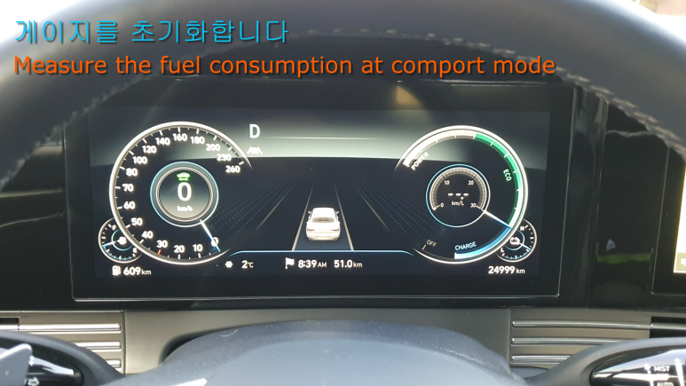 컴포트 모드만의 연비를 관찰하려면 기존의 연비를 리셋해야 합니다. 리셋하고 나면 연비가 초기화 되어 0부터 시작합니다.
